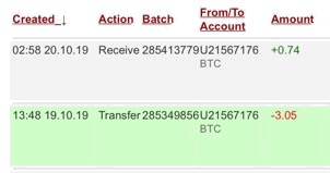 Withdrawal   $ 0.74    Oct-20-2019 02:18:38 AM